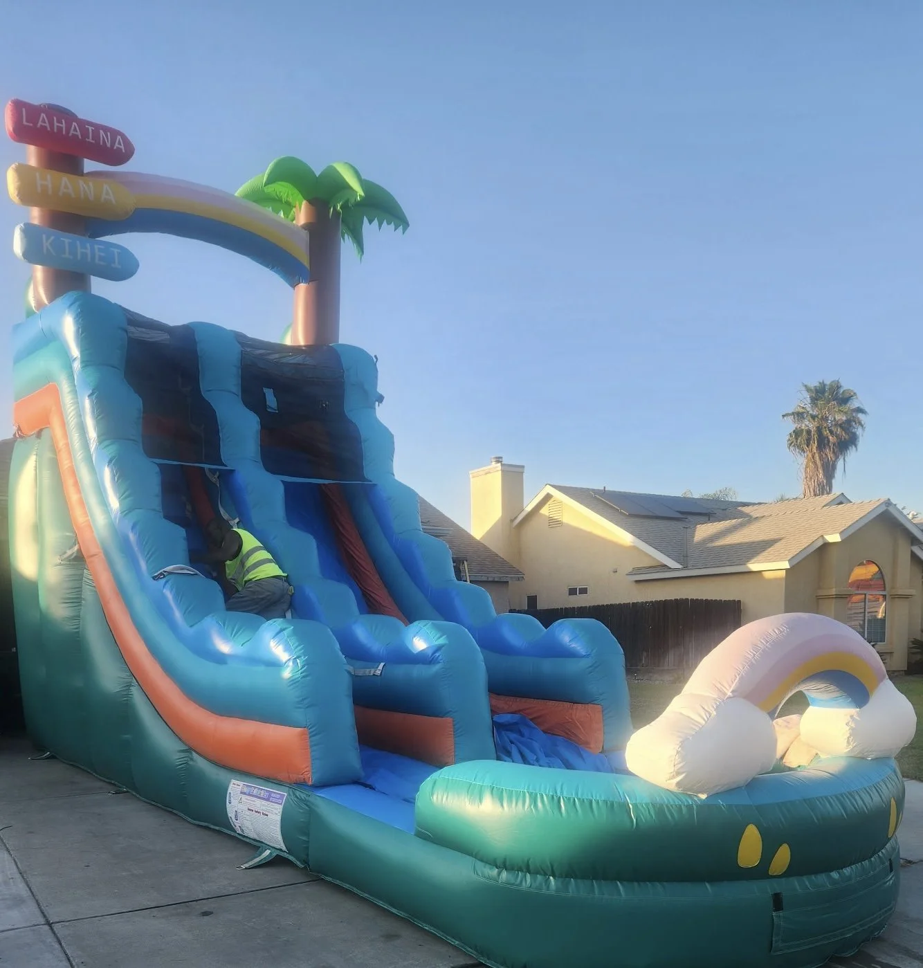 Turn up the tropical vibes with Tropical Rainbow, our 20-foot inflatable water slide that brings color, excitement, and endless fun to any event! Perfect for backyard parties, summer celebrations, and special occasions, this towering slide is designed to deliver non-stop thrills and refreshing splashes.